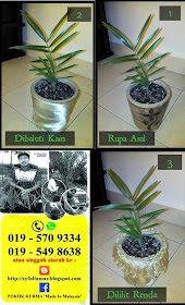 Sudah siap..! Jika anda mahu 'touch up' dengan hiasan mahupun item lain, boleh juga dizahirkan. Pasu contoh paparan kami yang berpohonkan Bonsai Tamar ini ringkas sahaja, kerana bertemakan korporat, cenderahati tempahan Suruhanjaya Syarikat Malaysia (SSM) buat YAB Menteri pada minggu lepas.